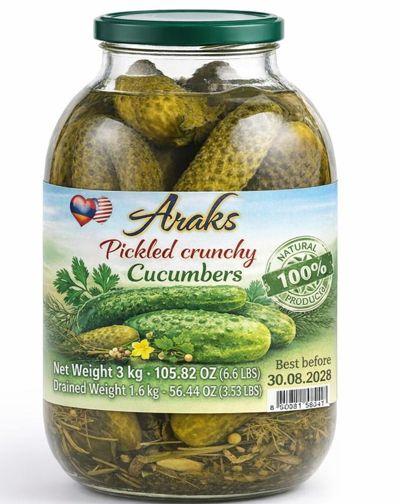 3Kg= "ARAKS" PICKLED CUCUMBERS IN BRINE 4*3000g